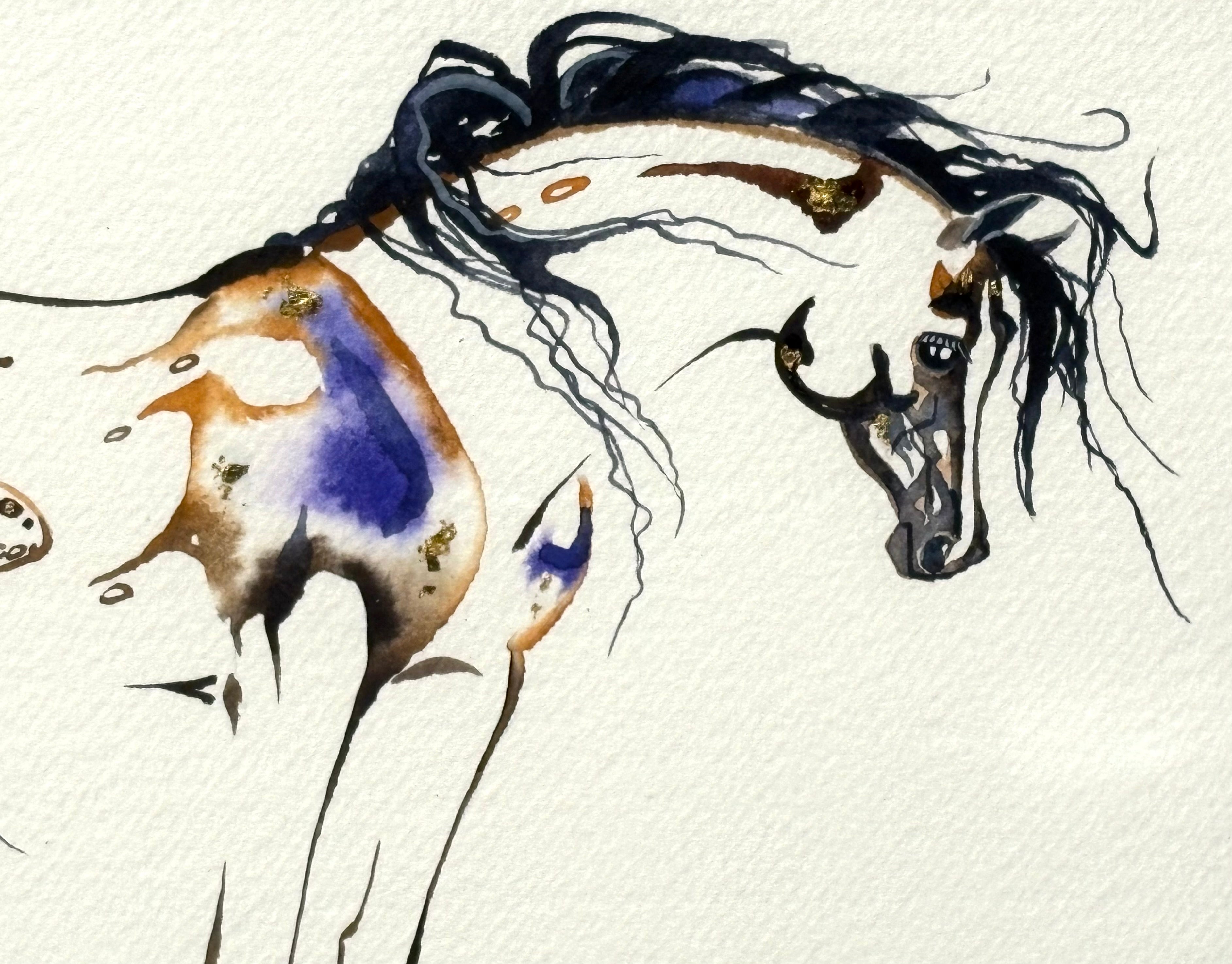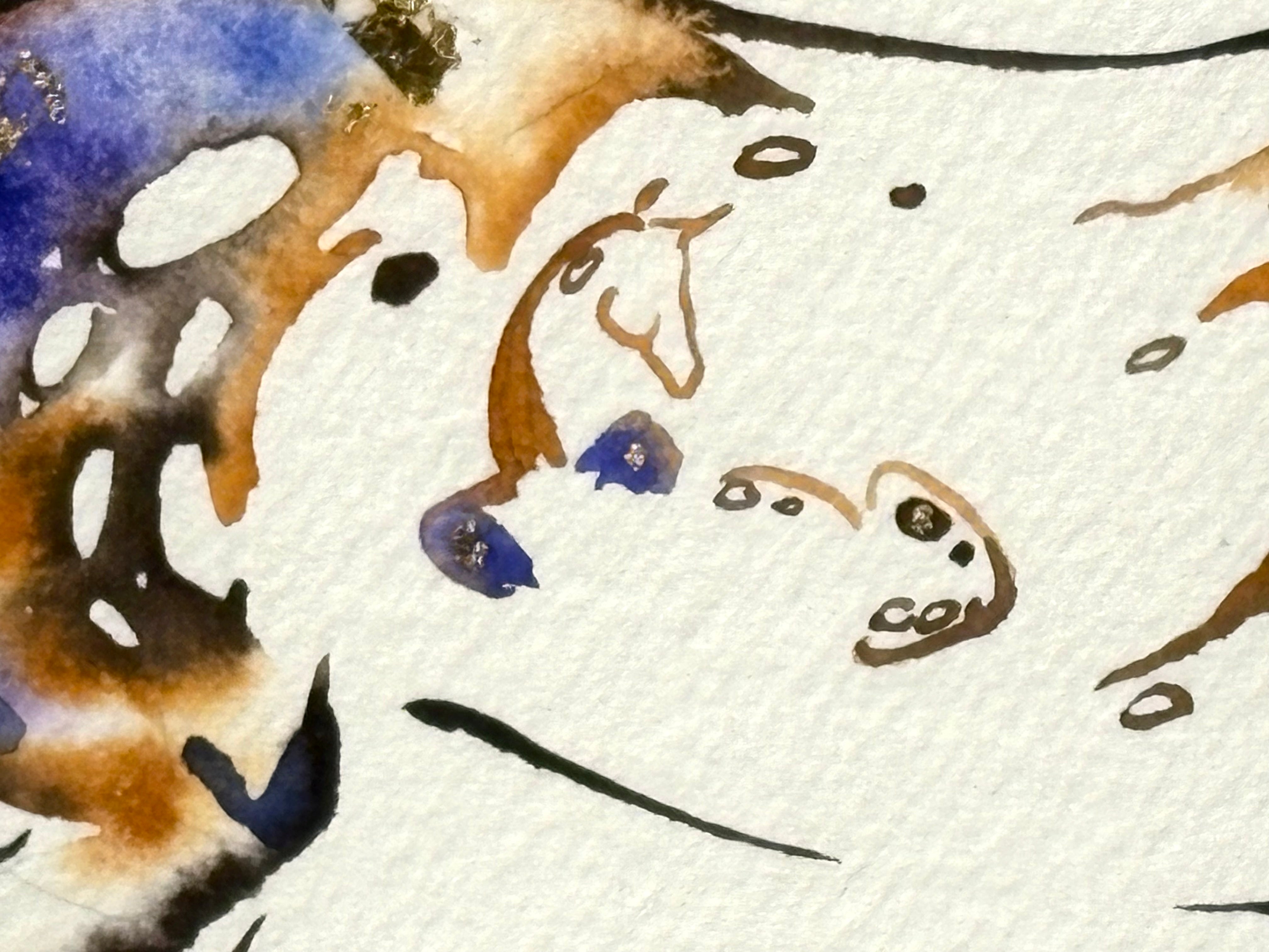 Original watercolor painting with 23K gold leaf created by Sarah Richards. The size mentioned in the title refers to the outside frame edge dimensions. Mat colors and/or frame styles can be changed for little or no up-charge. Item is fully framed and will be shipped with full insurance. Any question please call/text us at 207.592.4036.