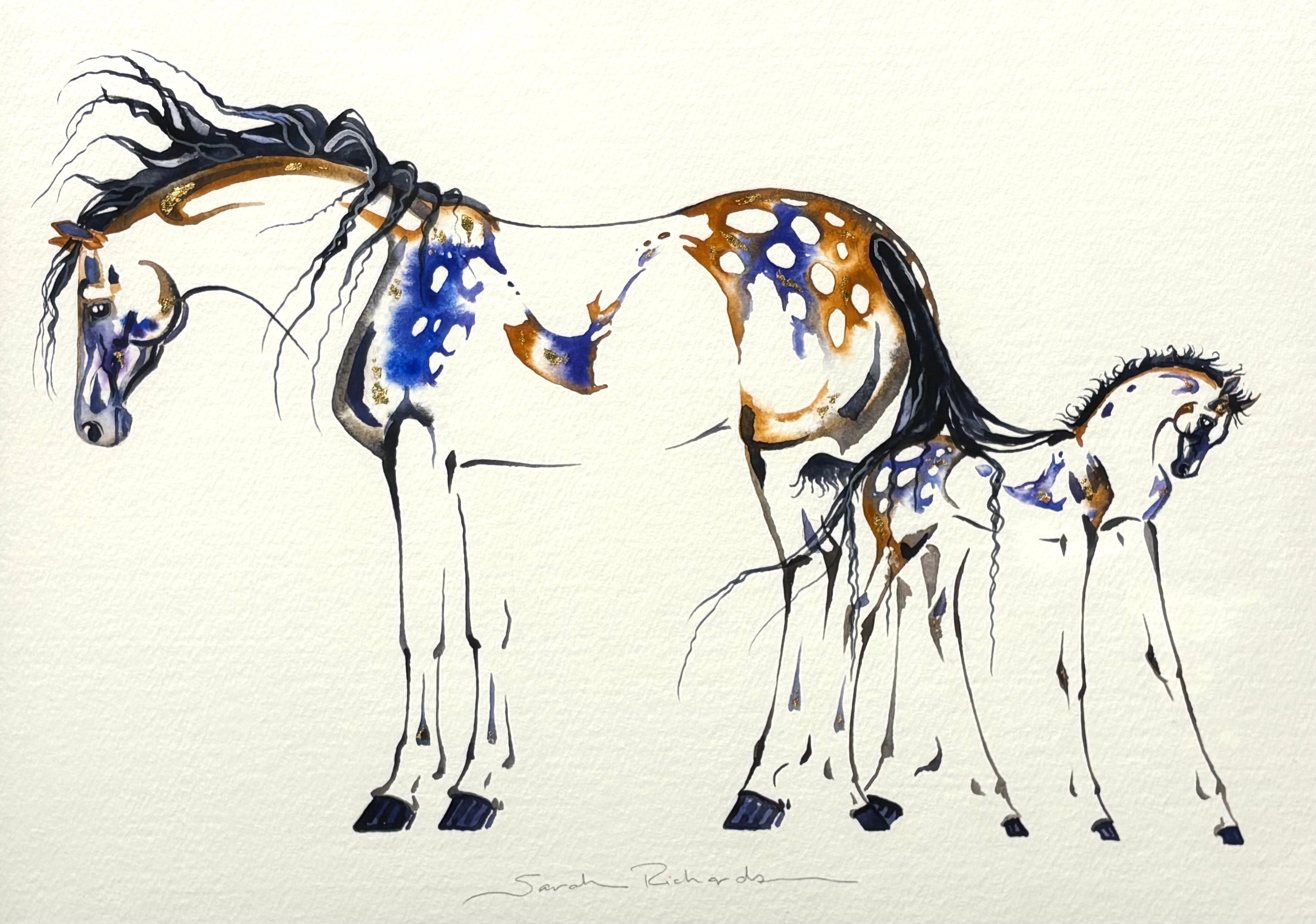 Mare and Foal with 23K gold leaf, framed to approx 17x21 $350