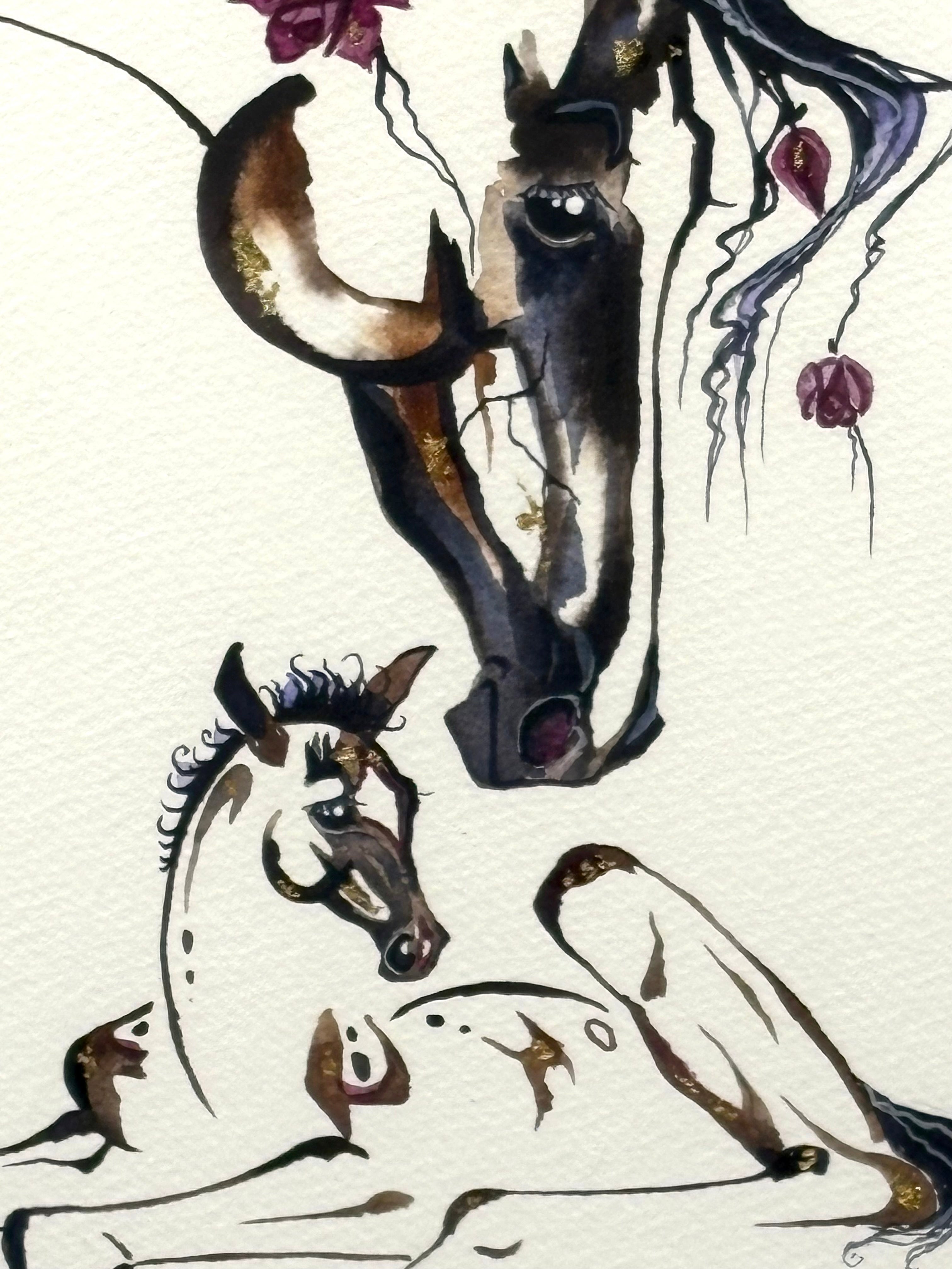 Mare and Foal with 23K gold leaf, framed to approx 13x16 $250