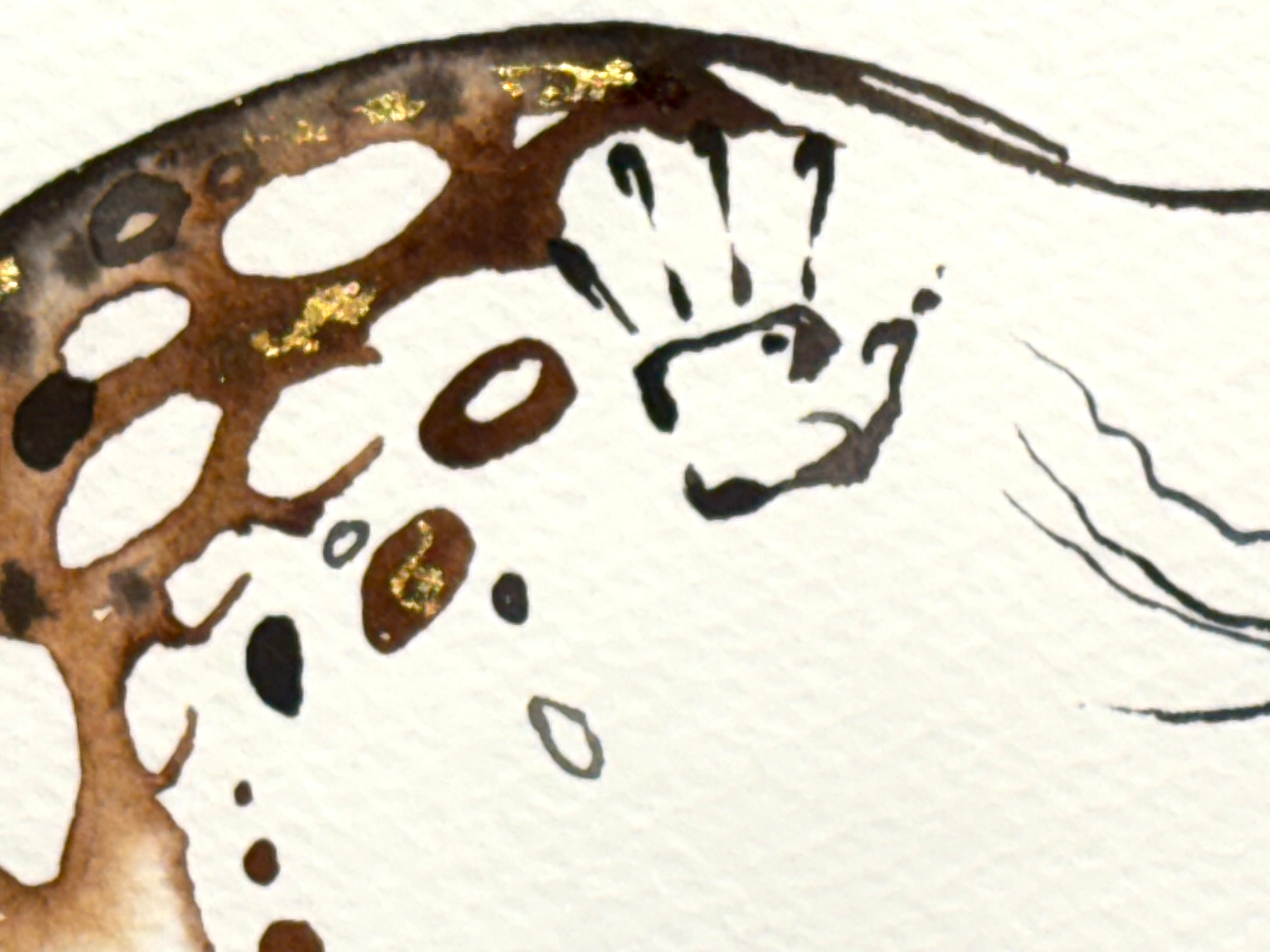 Original watercolor painting with 23K gold leaf created by Sarah Richards. The size mentioned in the title refers to the outside frame edge dimensions. Mat colors and/or frame styles can be changed for little or no up-charge. Item is fully framed and will be shipped with full insurance. Any question please call/text us at 207.592.4036.