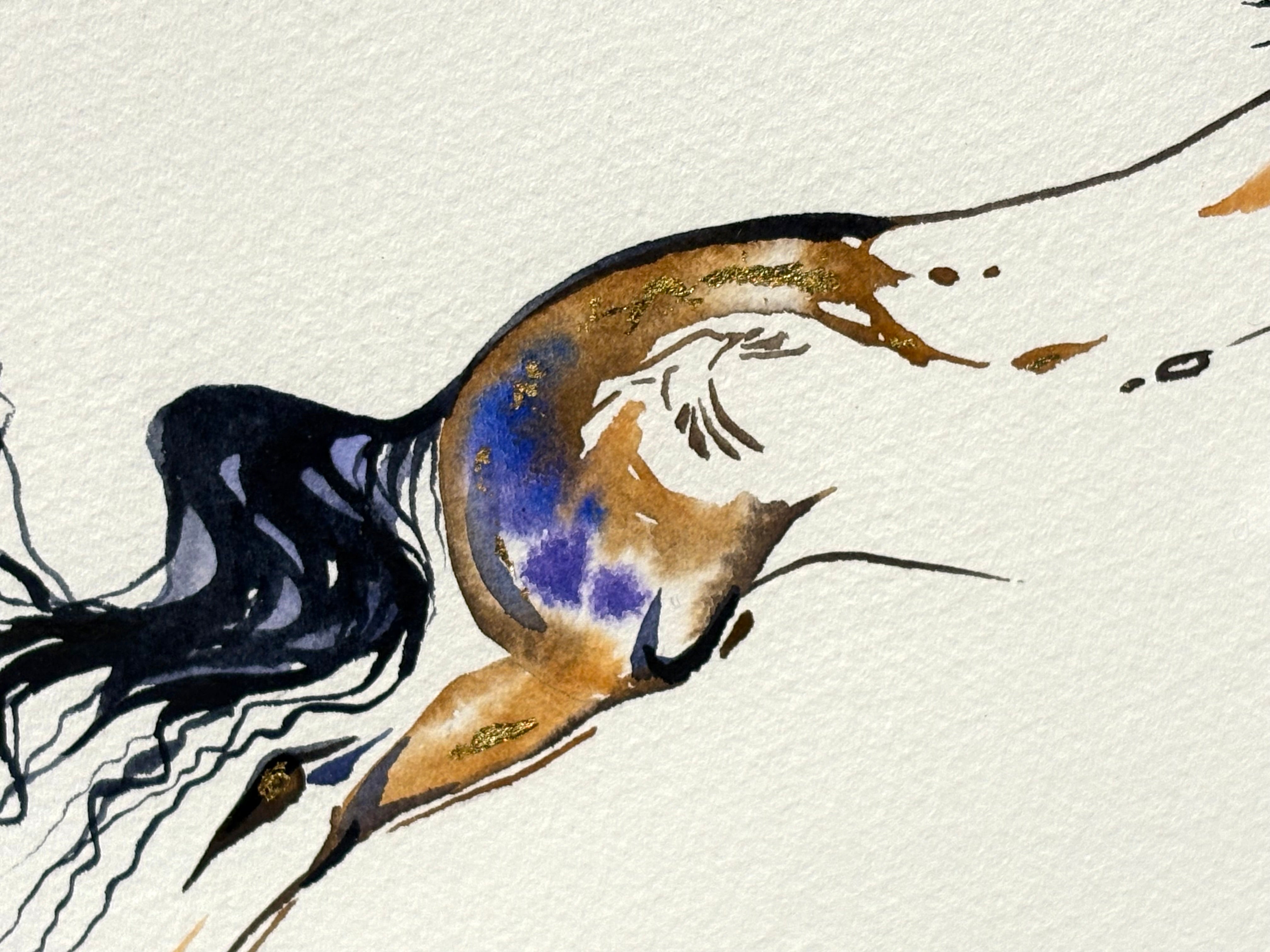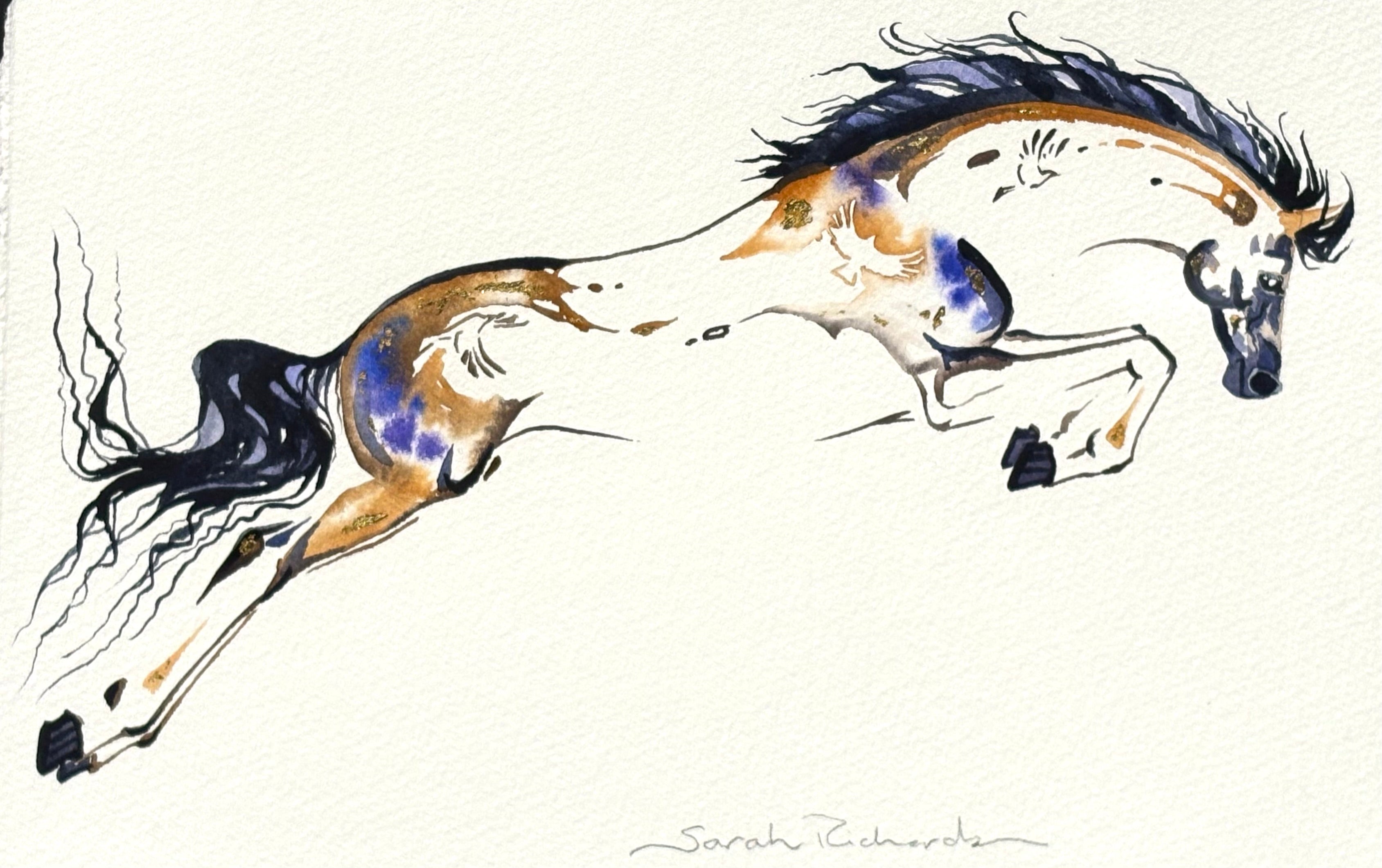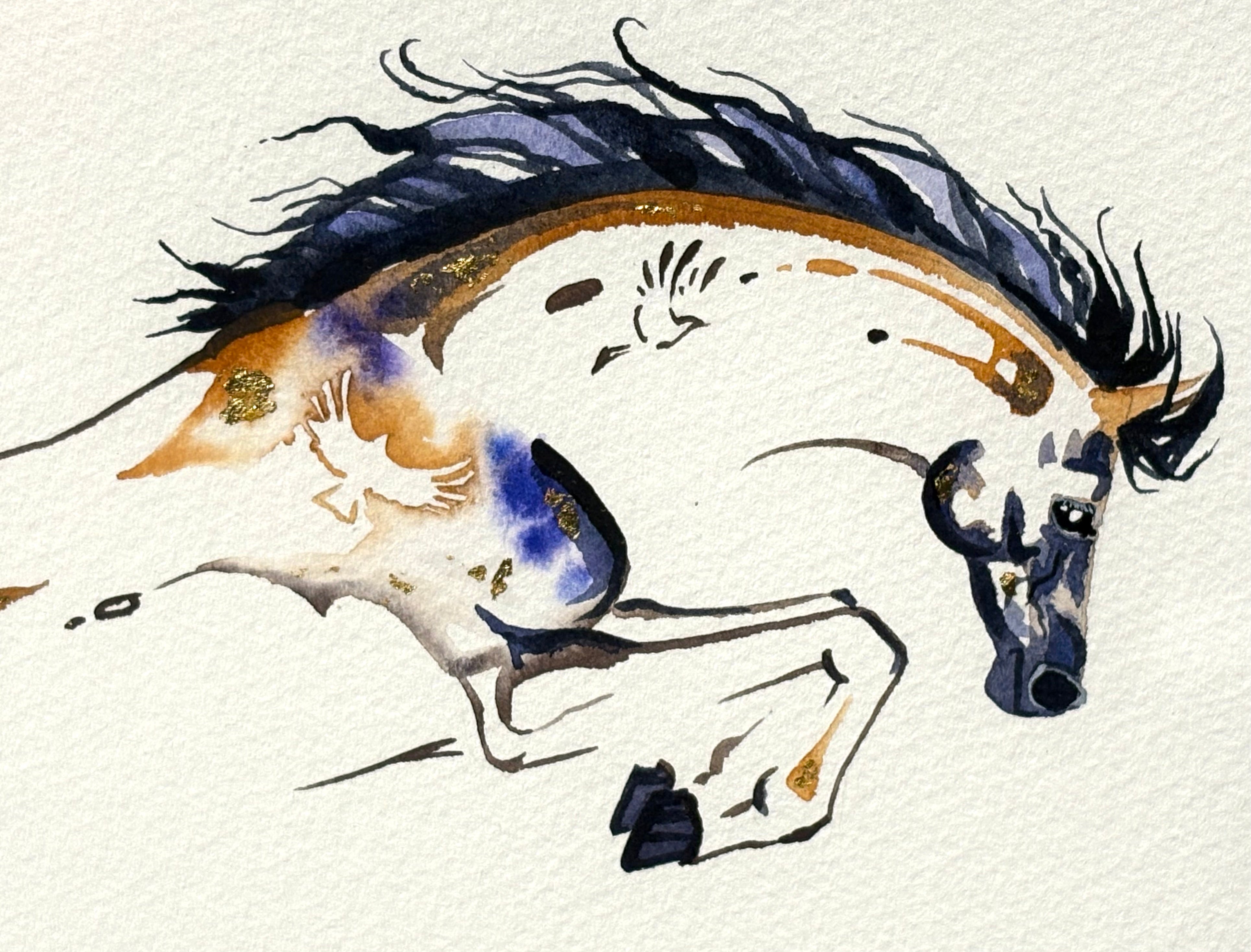 Original watercolor painting with 23K gold leaf created by Sarah Richards. The size mentioned in the title refers to the outside frame edge dimensions. Mat colors and/or frame styles can be changed for little or no up-charge. Item is fully framed and will be shipped with full insurance. Any question please call/text us at 207.592.4036.