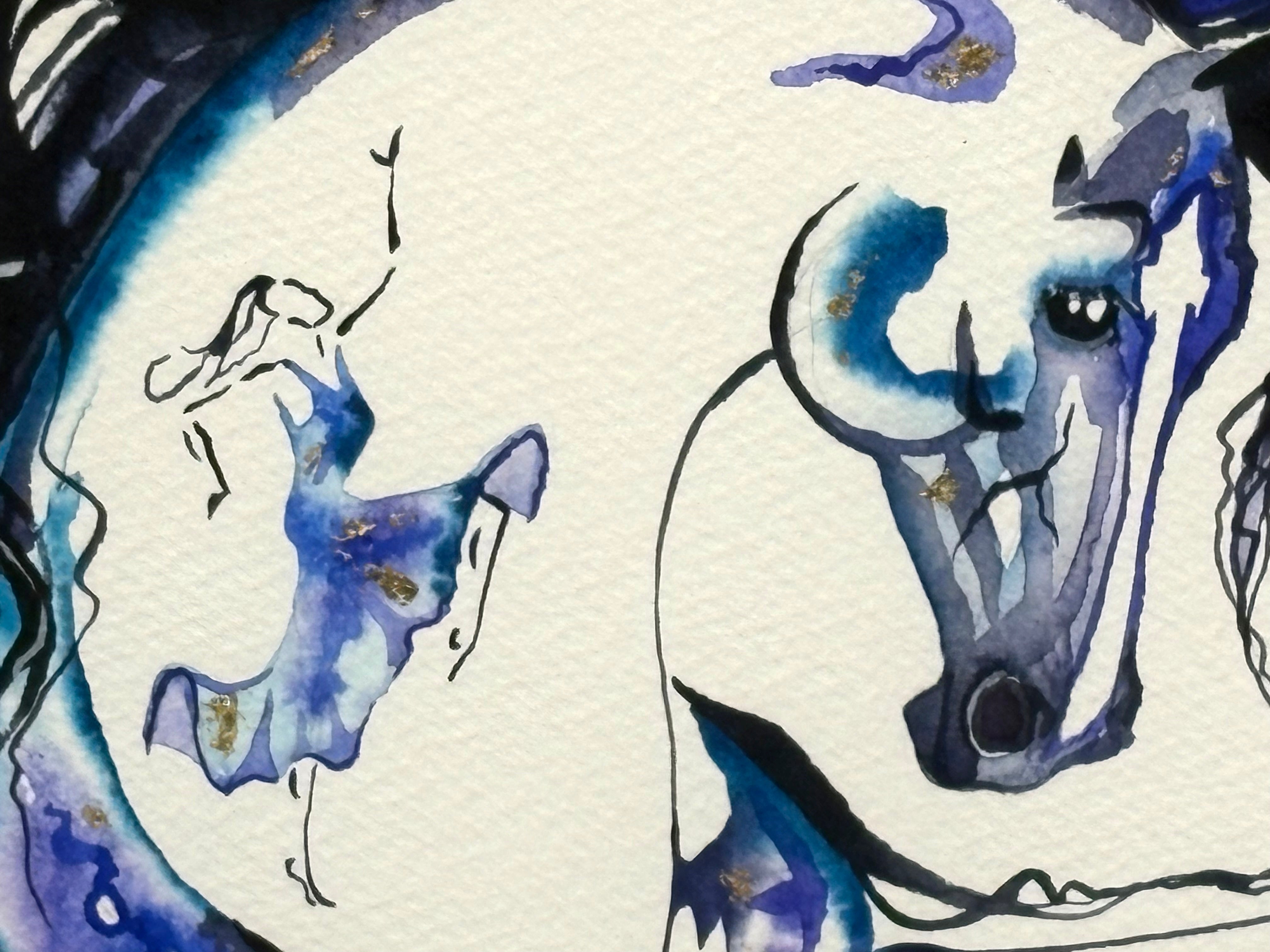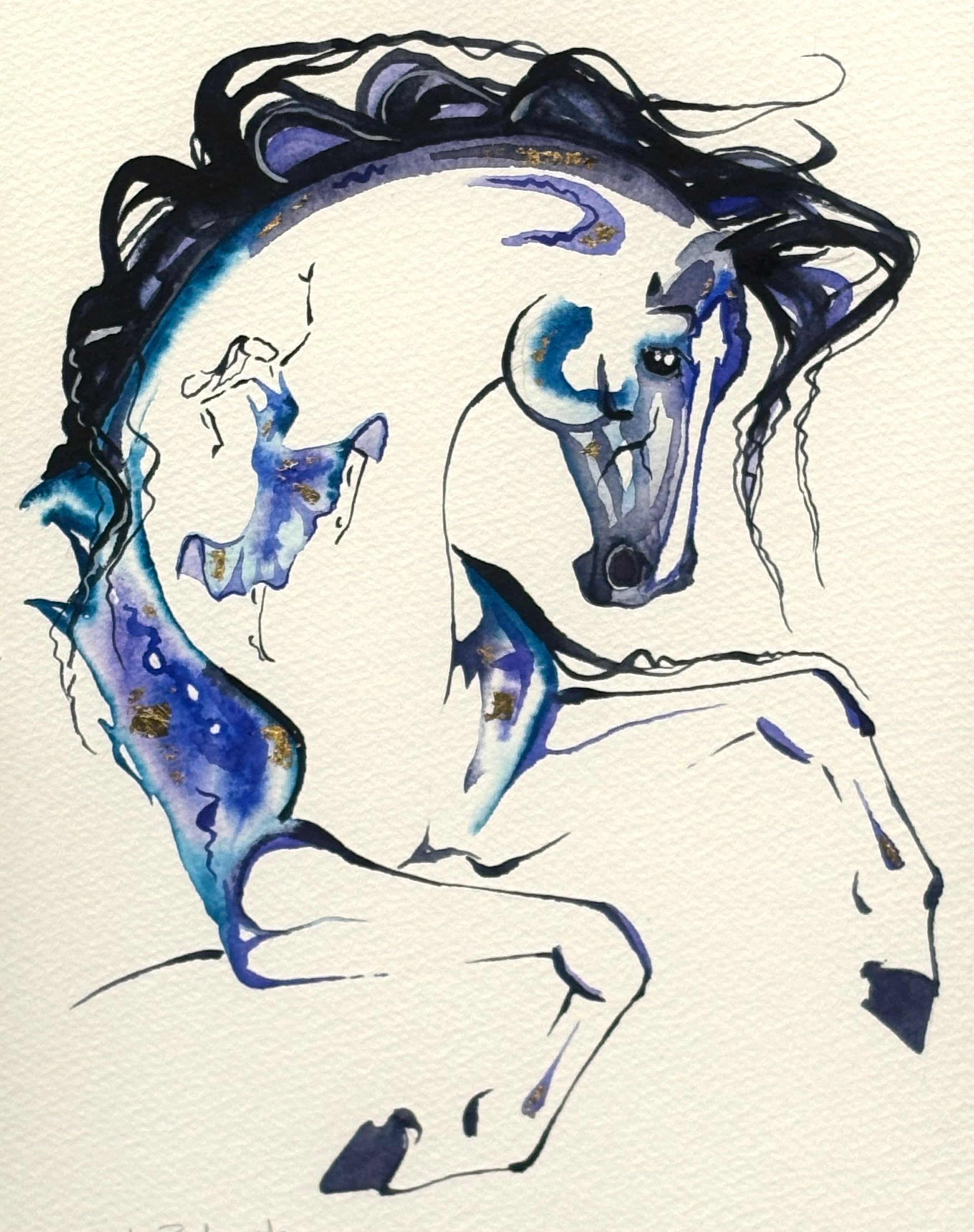 Rearing horse with hidden dancer and 23K gold leaf 17x21 $350