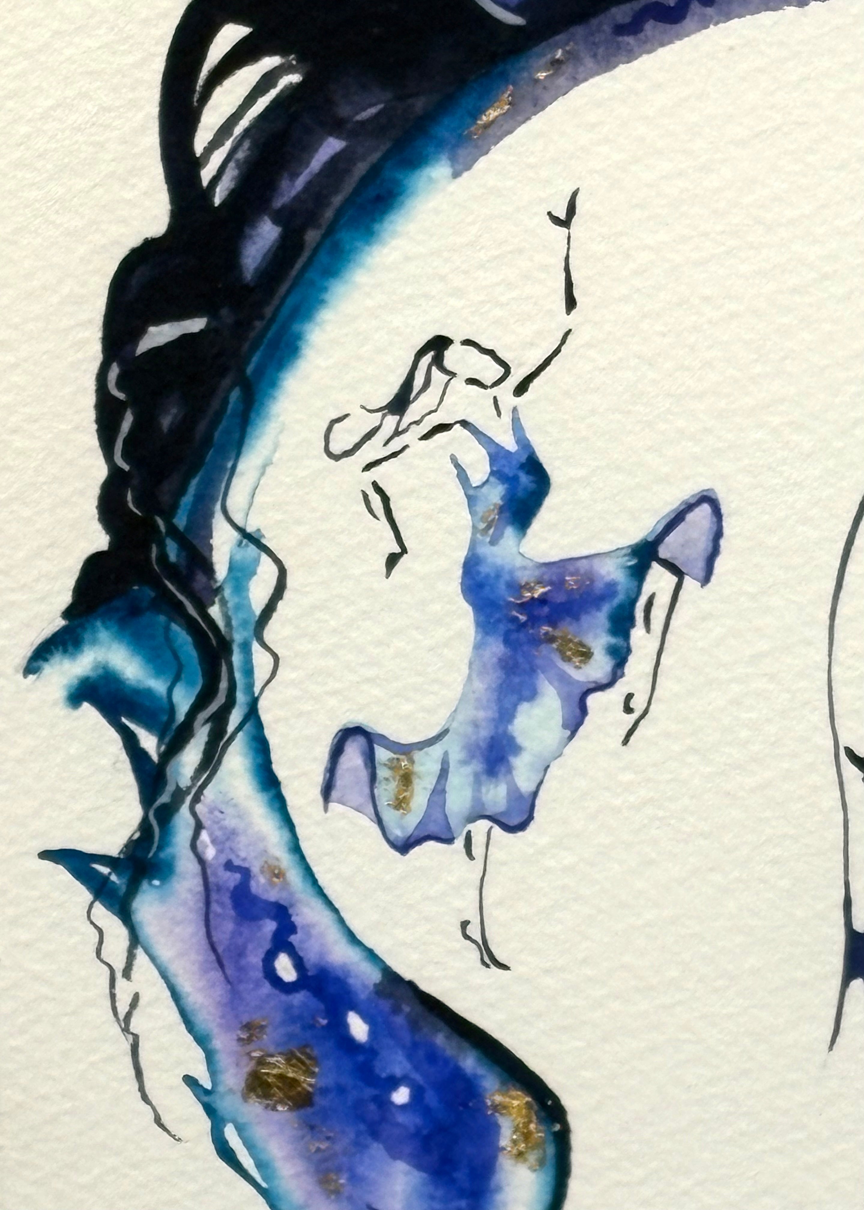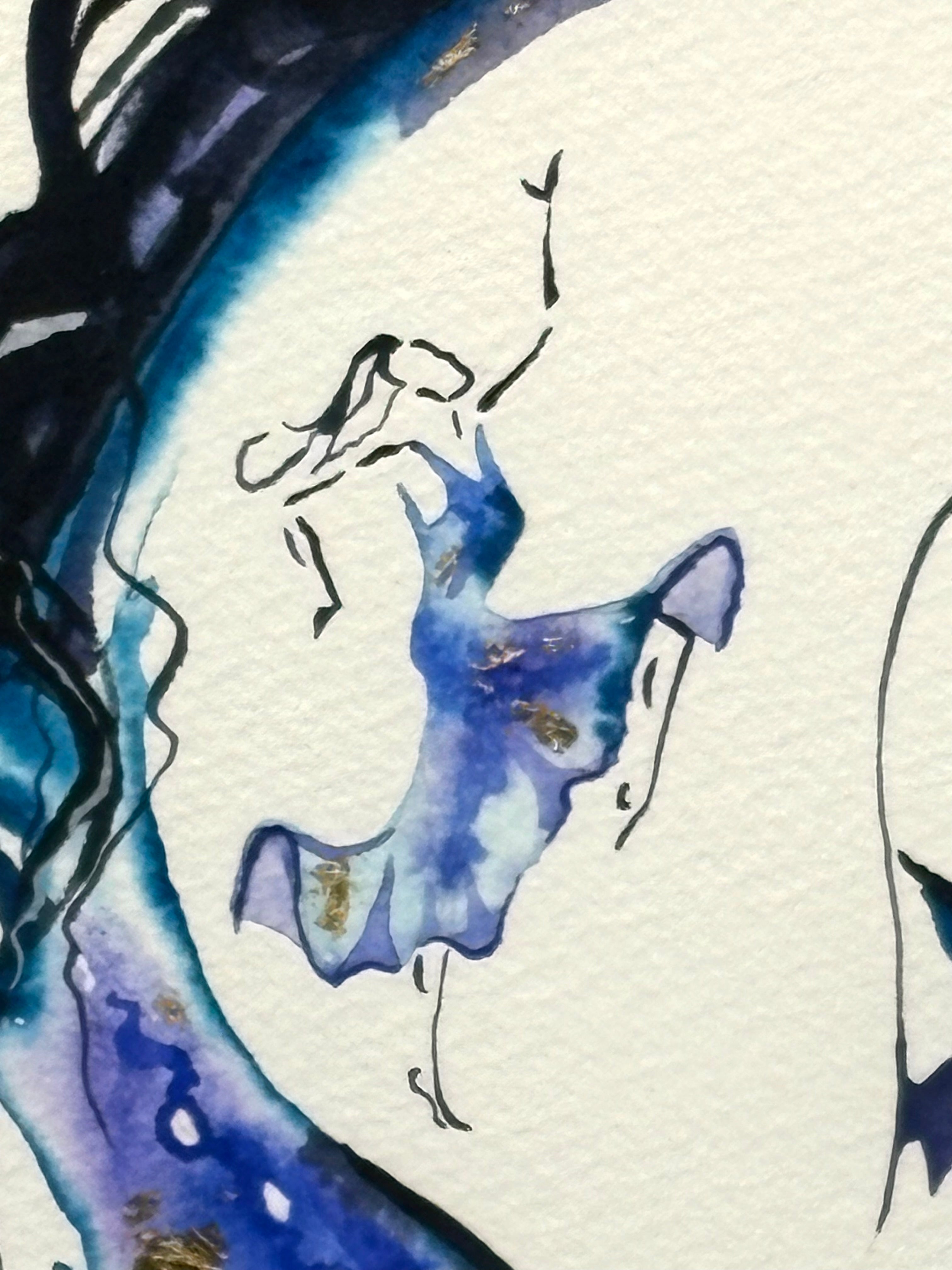Original watercolor painting with 23K gold leaf created by Sarah Richards. The size mentioned in the title refers to the outside frame edge dimensions. Mat colors and/or frame styles can be changed for little or no up-charge. Item is fully framed and will be shipped with full insurance. Any question please call/text us at 207.592.4036.