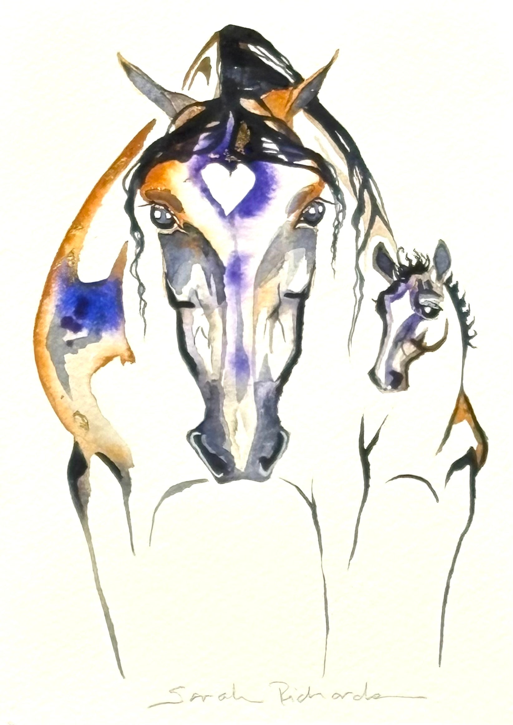 Mare and foal with 23K gold leaf, framed to approx 9x11, $195